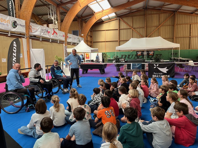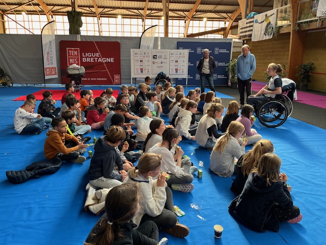 Nous avons vécu un moment fort ( avec la classe de CM2) en assistant à un match de paratennis à l’occasion du 8ème tournoi de Lorient. Ce grand moment rimait avec la solidarité, le civisme, la fraternité, le respect de l’autre, l’accomplissement et le dépassement de soi…  des valeurs chères à notre école !