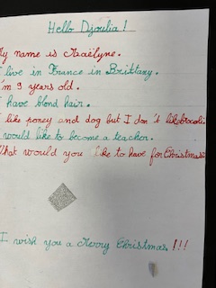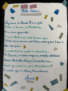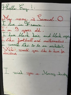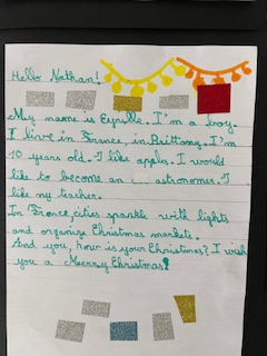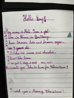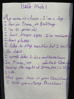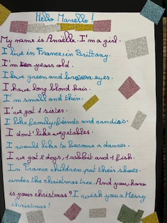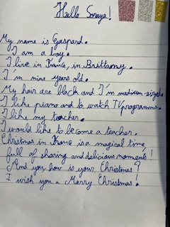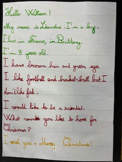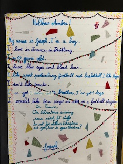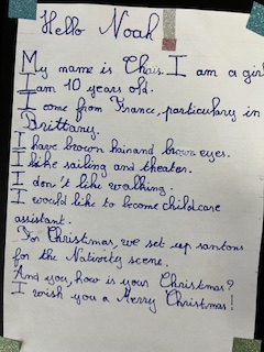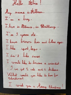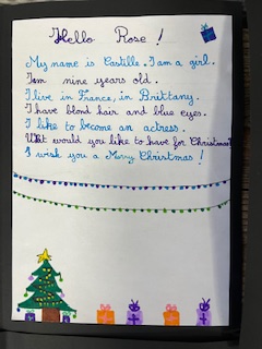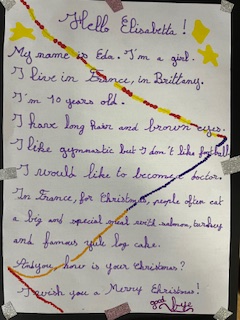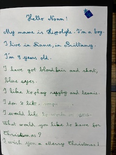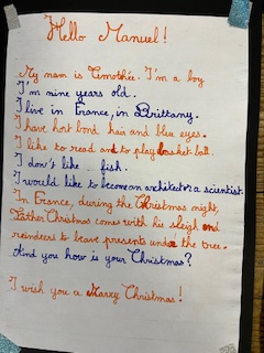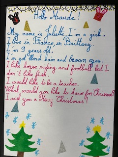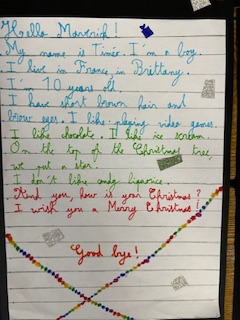 Dans le cadre du projet « North Pole Box », Les CM1-CM2 ont écrit en anglais une carte de Noël à leurs correspondants européens . Ils ont utilisé appris à se présenter et à parler des coutumes et traditions de Noël en France puis décoré leurs « Christmas Cards », mettant ainsi en jeu des compétences variées!