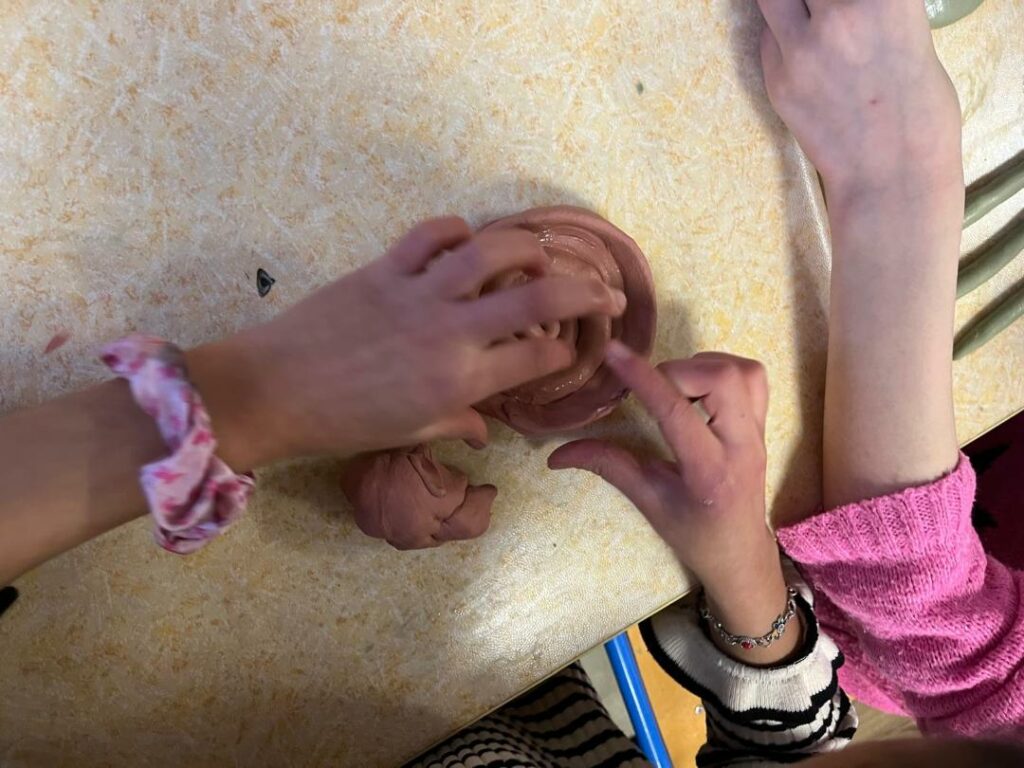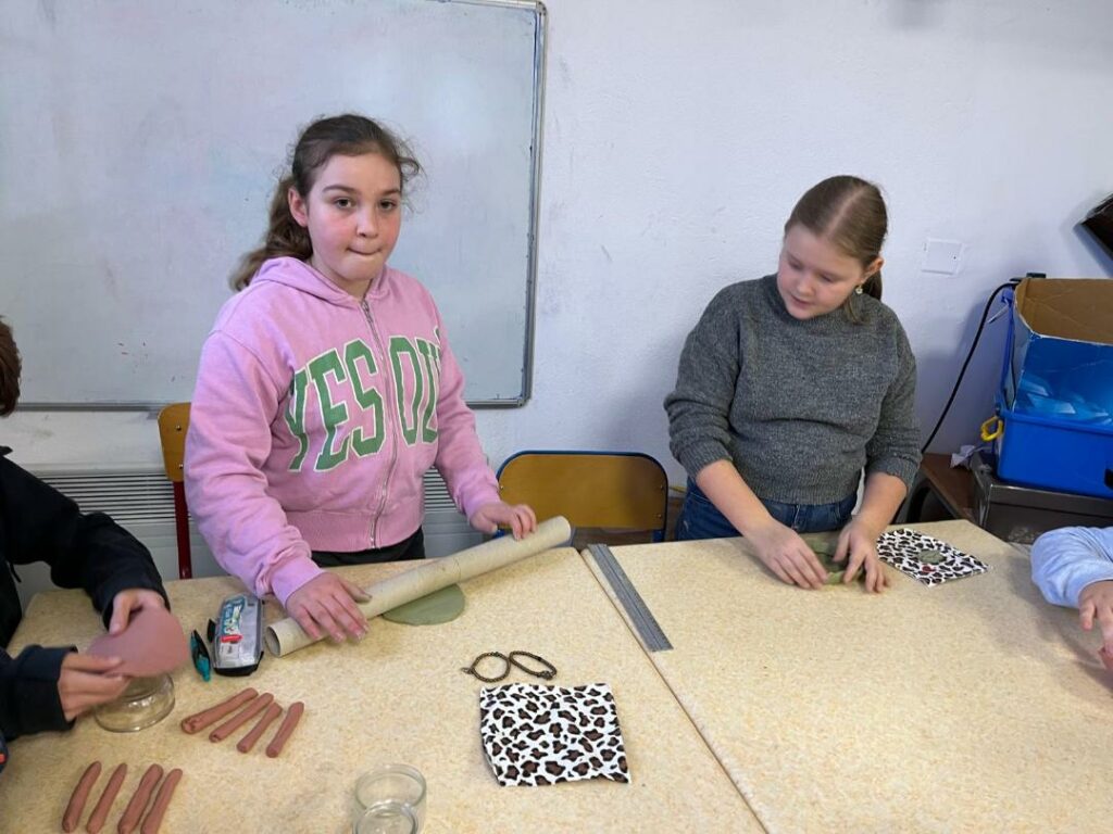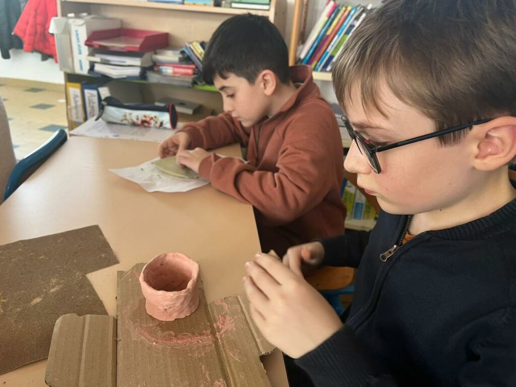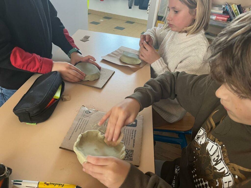 En arts plastiques, nous avons exploré la poterie en utilisant de l’argile séchante, sans cuisson. Nous avons modelé différents objets en laissant parler notre créativité.