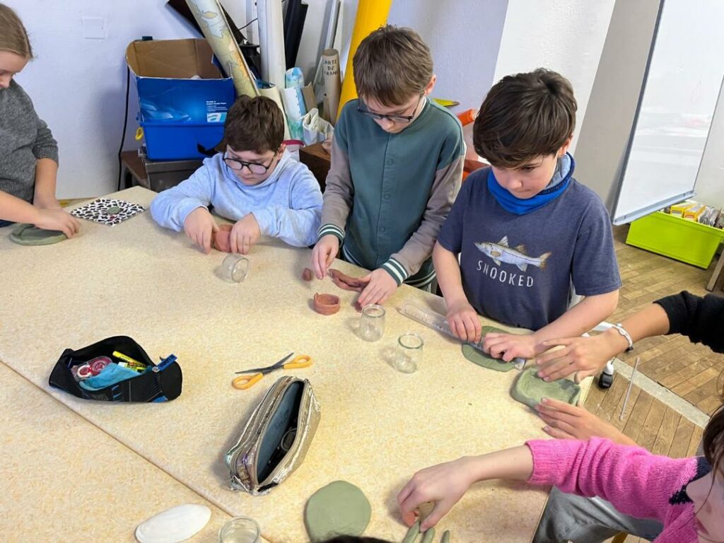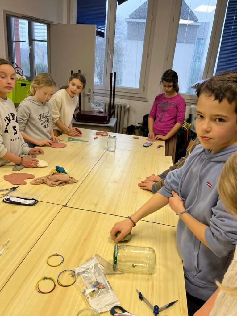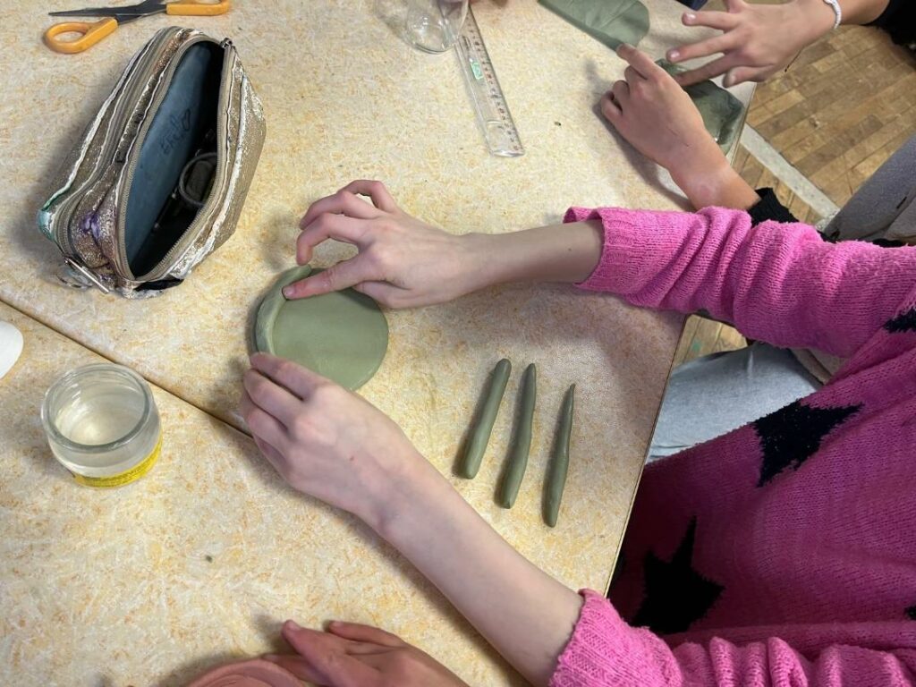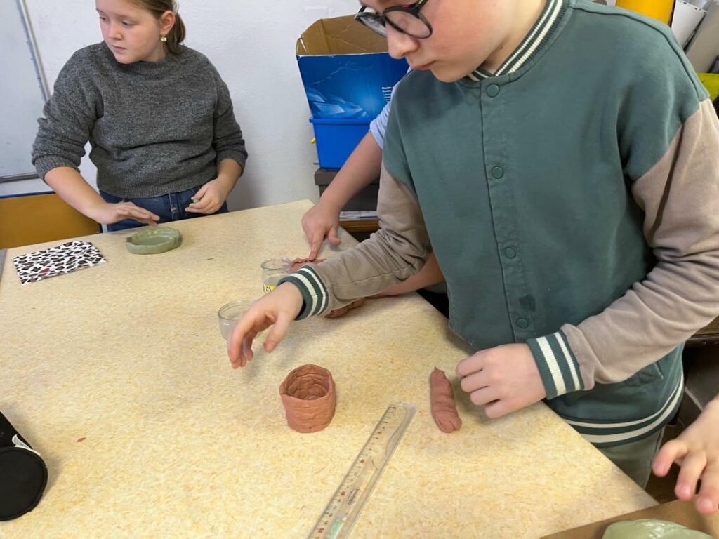 En arts plastiques, nous avons exploré la poterie en utilisant de l’argile séchante, sans cuisson. Nous avons modelé différents objets en laissant parler notre créativité.