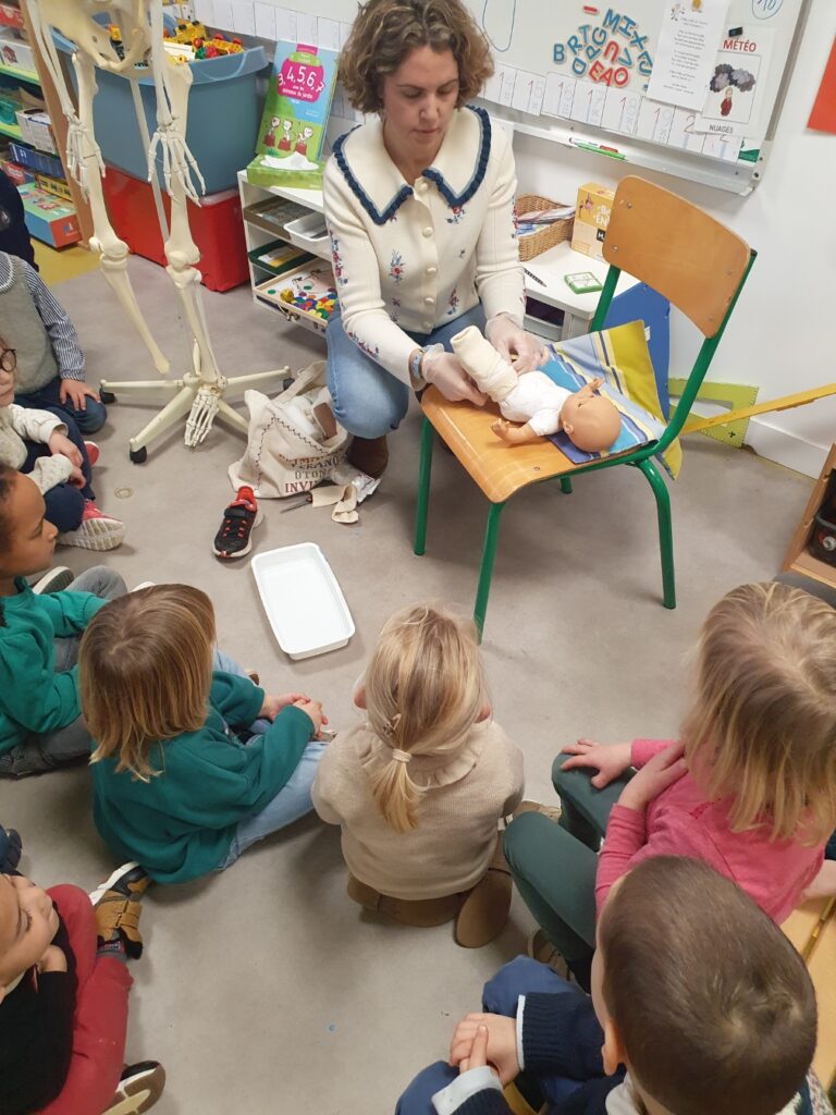 En lien avec notre travail sur les articulations, la maman de Virgile est venue nous présenter son métier d’orthopédiste: les fractures, entorses et autres n’ont plus de secrets pour les MS et GS de Camille.